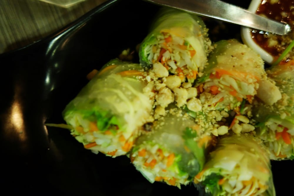 These spring rolls are a favorite Asian appetizer, made of rice wrap, tofu fresh vegetables paired with a sweet chili sauce